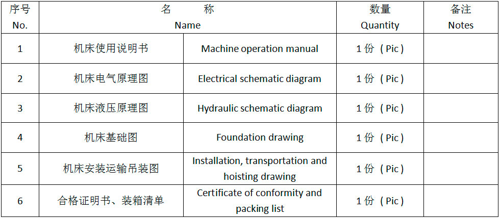 四.機床主要技術參數(shù)Main technical parameters of machine tools